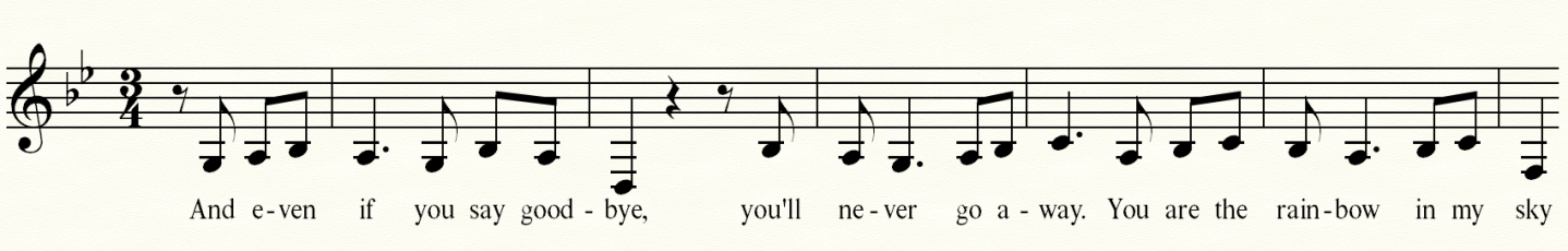 Die zunächst englischen Lyrics erzählen im Refrain, nach mehreren, sehr bekannten Natur-Mensch-Vergleichsbildern (»You are the rainbow in my sky«), von einem neuen Tag, der kommen wird. Nicht etwa dreht sich der Song aber um die politische Lage in Israel, sondern um Liebe, um Liebes- und Verlassens-Schmerz. Jedoch ist sicherlich intendiert, dass man als Rezipierender annimmt, es handele sich um ein »Lied zur Zeit«, allein, weil der Song den Titel New Day Will Rise trägt. Die Bridge des Songs wird dann auf Hebräisch gesungen. Es sind Worte aus dem Hohelied Salomo, Kapitel 8, Vers 7, die hier wiedergegeben werden: »Wären es noch so viele der Wasser: Die Liebe zu löschen vermögen sie nicht!« Der schöne Klang der hebräischen Sprache … An dieser Stelle dramaturgisch perfekt gesetzt, entfaltet jener Moment eine große Kraft. Zuvor, in der zweiten Strophe, war man bereits für ein paar Zeilen ins Französische hinübergewechselt, um die gleichen Worte, die zuvor auf Englisch gesungen werden, noch einmal zu bringen: »Selbst, wenn du ›Auf Wiedersehen‹ sagst, wirst du immer da sein. Du bist der Regenbogen in meinem Himmel, meine Farben im Grau, mein größter Wunsch nach einem Stern, nach Sonnenschein am Tag, das einzige Lied, das mein Klavier jemals spielt.«