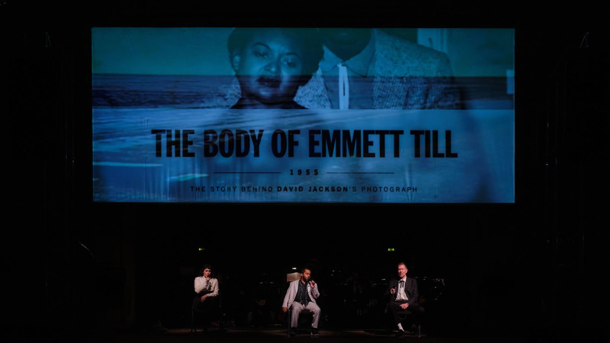Am Ende wird’s dann doch zuerst potenziell kontrovers – und schließlich emotional bewegend im Neuköllner Heimathafen: Denn da kann der Sänger Isaiah Robinson offensichtlich kaum seine Tränen zurückhalten. Kurz davor ließ der Komponist Ted Hearne auf der Video-Ebene von over and over vorbei nicht vorbei dokumentarische Filmaufnahmen deutscher KZ-Gräuel (unter anderem aus Alain Resnais’ Nacht und Nebel) mit Fotografien von Emmett Till überblenden, jenem 14-jährigen schwarzen Jungen, der 1955 im Bundesstaat Mississippi von erwachsenen Weißen aus rassistischen Gründen unvorstellbar grausam ermordet wurde. Am Ende dieser Bilder wird Isaiah Berlin eine Art Loop anstimmen, der auf Whitney Houstons How Will I Know basiert. Das ist kaum auszuhalten.